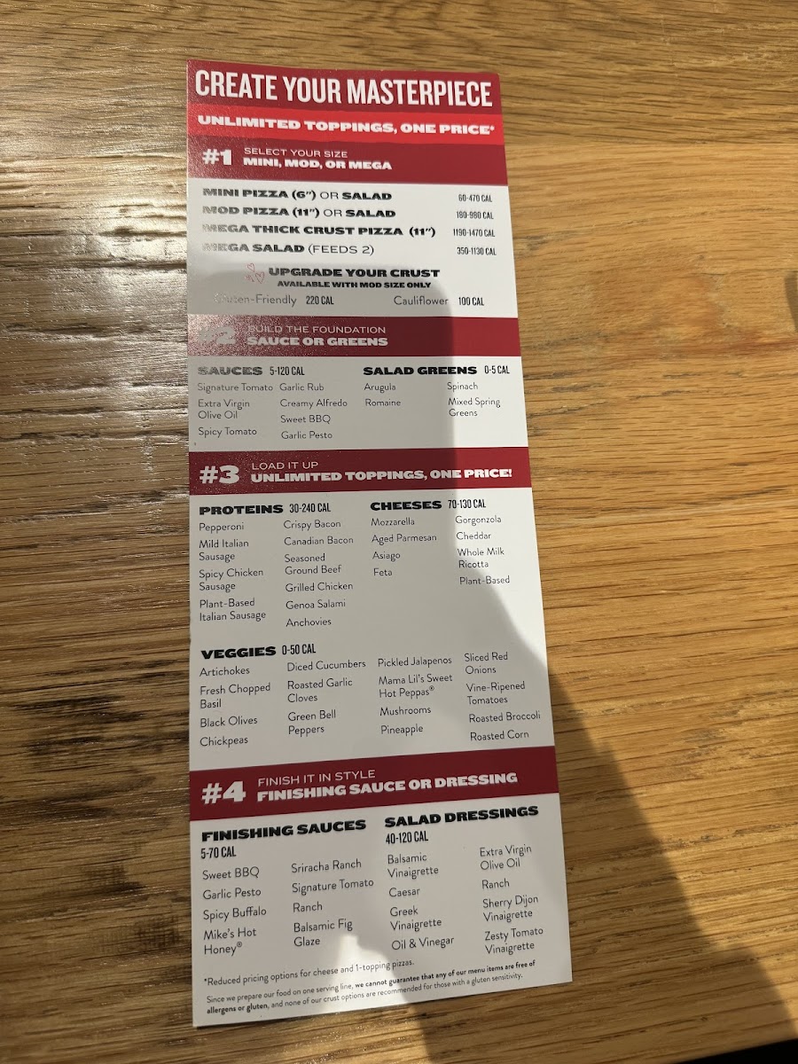 The atmosphere is fun and inviting, perfect for family meals. While service may vary, many patrons praise the flavorful pizzas, with recommendations for the cheesy bread being a favorite among kids. Despite some inconsistencies in food preparation and cleanliness, the enjoyable flavors, quick service during peak hours, and friendly staff make MOD Pizza a worthwhile stop for pizza enthusiasts.